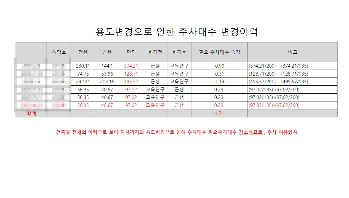 한달간의 수행과 협의 과정을 통해 최종적으로 용도변경을 완료 하였습니다.