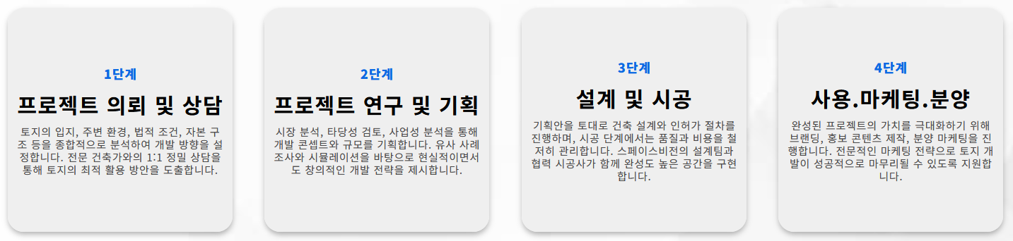 소규모 토지부터 복합개발까지, 최적의 수익모델을 제안합니다.